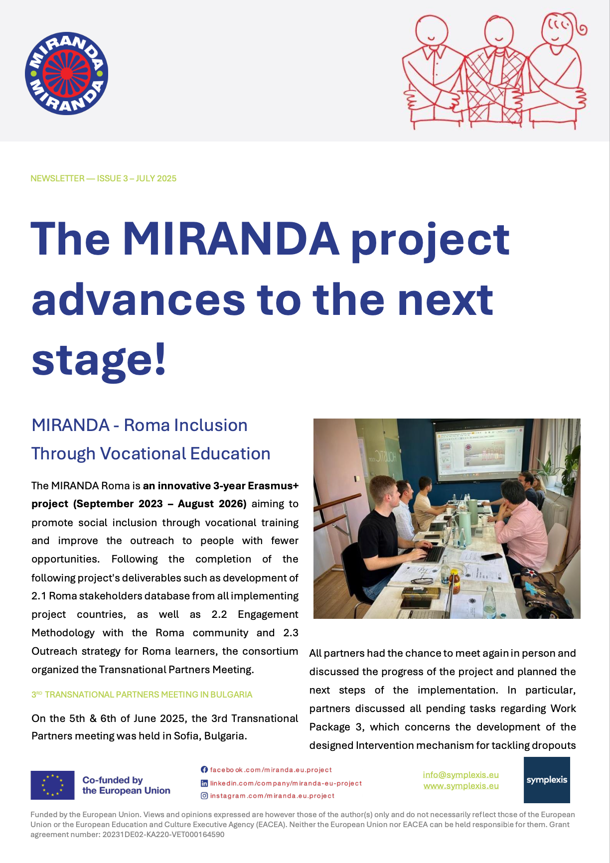 The third newsletter of the MIRANDA – roMa Inclusion thRough vocAtioNal eDucAtion project has been published! MIRANDA is a 3-year European project aiming to promote social inclusion through vocational training and improve the outreach to people with fewer opportunities.